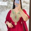 قفطان وكيمونو مغربي بتصميم مخزني فاخر – طرزة المخ والعقاد الأصيلة