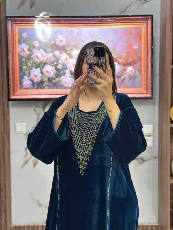 قفطان وكيمونو مغربي بتصميم مخزني فاخر – طرزة المخ والعقاد الأصيلة (Copie)